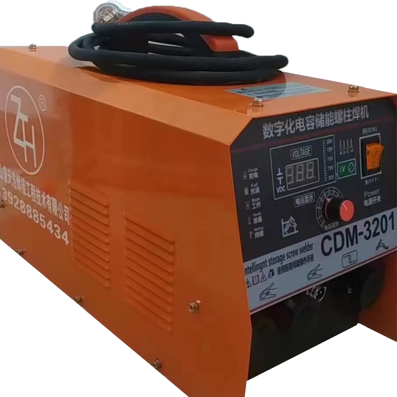 儲能式螺柱焊機可將螺柱、內螺紋螺柱、銷釘等類似的元件焊于金屬工件上。在焊接過程中,通過元件尖端放電使儲能電容放電,放電時間0.001-0.003秒,不需要氣體或陶瓷環保護,熔深約0.1MM。